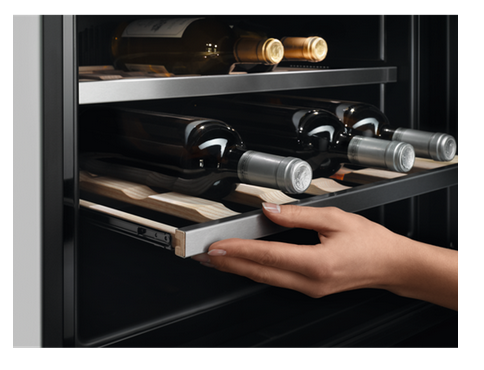 Bezuchwytowa chłodziarka do wina jest idealnie dopasowana pod względem wzornictwa do innych urządzeń AEG.