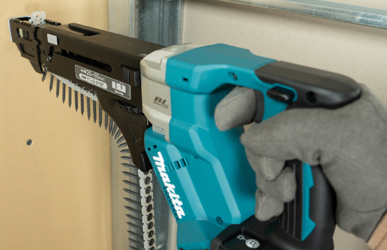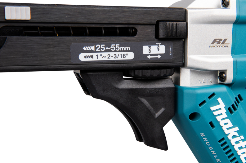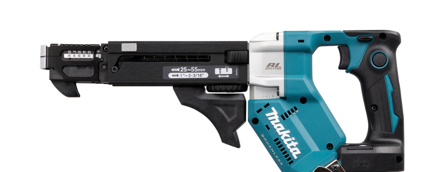 Akumulatorowy wkrętarka magazynowa LXTDFR551 z napięciem 18 V i prędkością 0 - 6 000 min⁻¹ umożliwia szybkie wkręcanie dzięki automatycznemu podajnikowi i technologii Push-Drive. Bezszczotkowy silnik i regulacja głębokości zapewniają precyzyjne rezultaty. Po włączeniu trybu Push-Drive urządzenie uruchamia się automatycznie po naciśnięciu na końcówkę wkrętarki, co minimalizuje czas bez obciążenia i wydłuża czas pracy na akumulatorze. Długi prowadnik wkrętów zapobiega zacięciu pasa. Idealne do wkrętów od 25 do 55 mm.