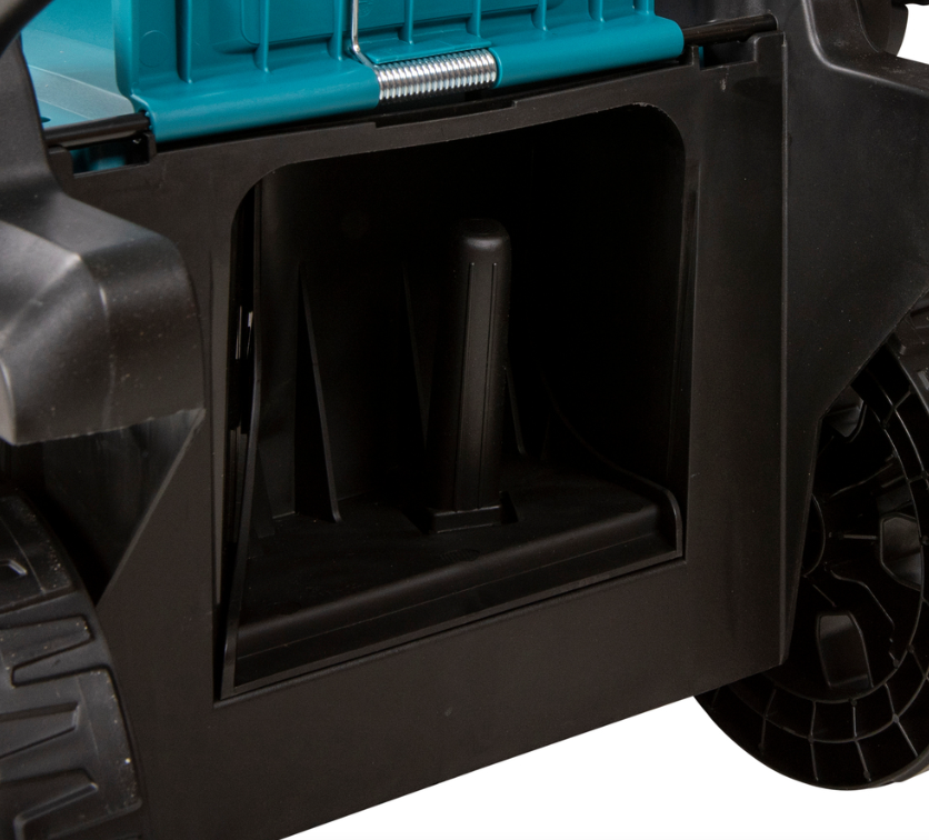 - Kompaktowy kosz na trawę do oszczędnego przechowywania w pionie