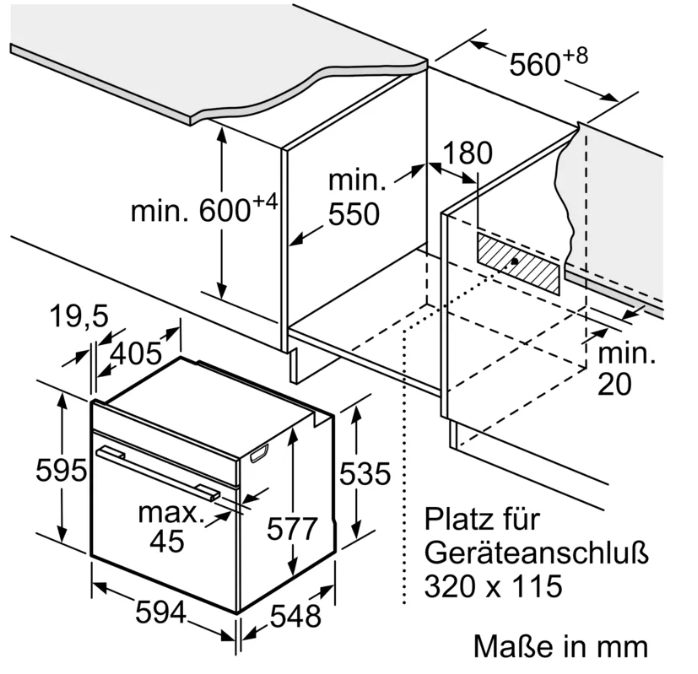 Abmessungen des Gerätes: …595x594x548 mm