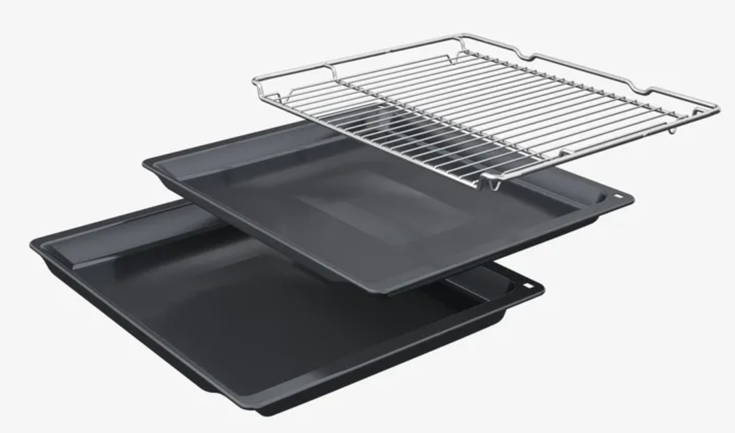 Integriertes Zubehör: …1 x Backblech emailliert, 1 x Kombirost, 1 x Universalpfanne